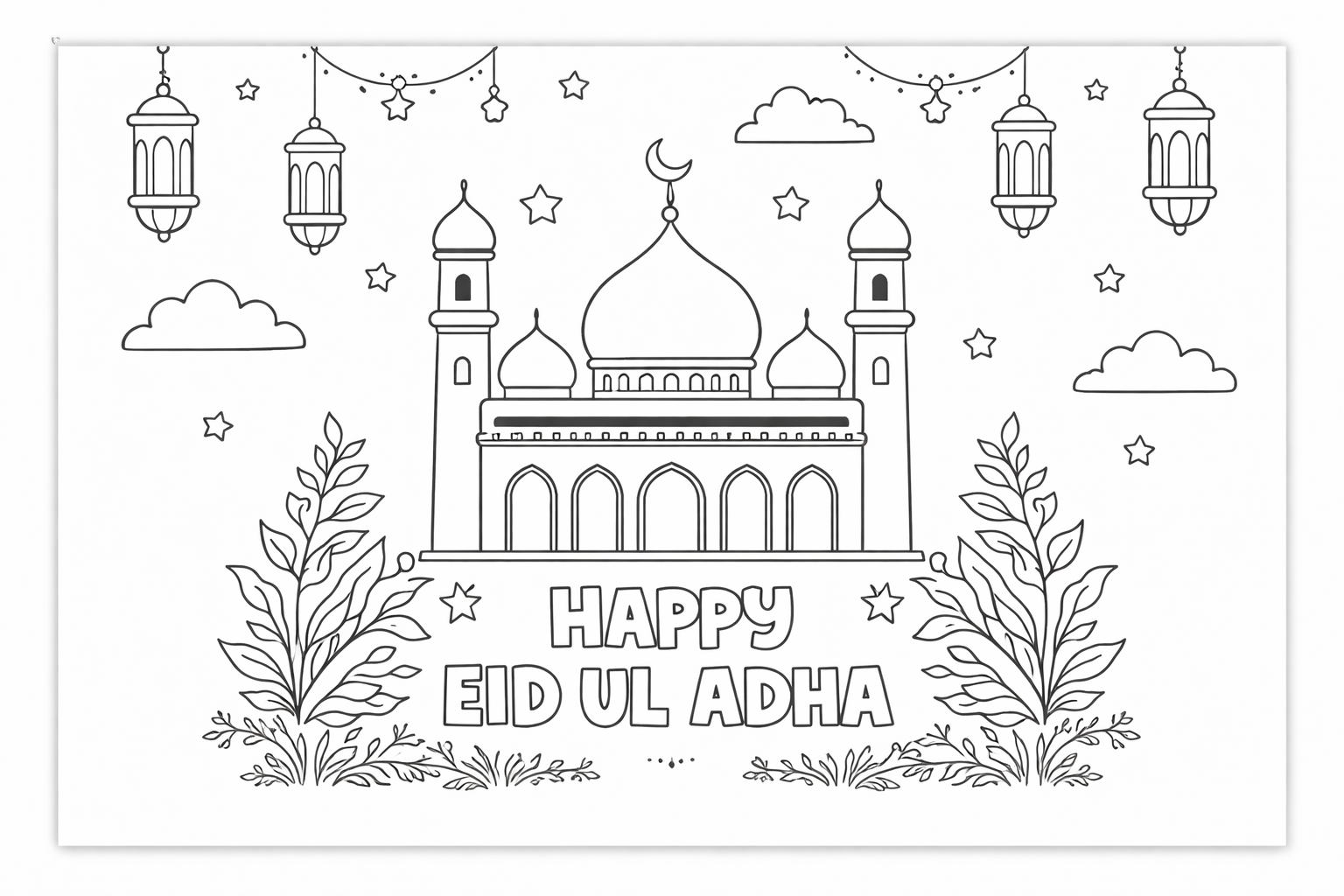 Children learn best through creativity and hands-on activities. This Eid ul Adha coloring sheet helps them: