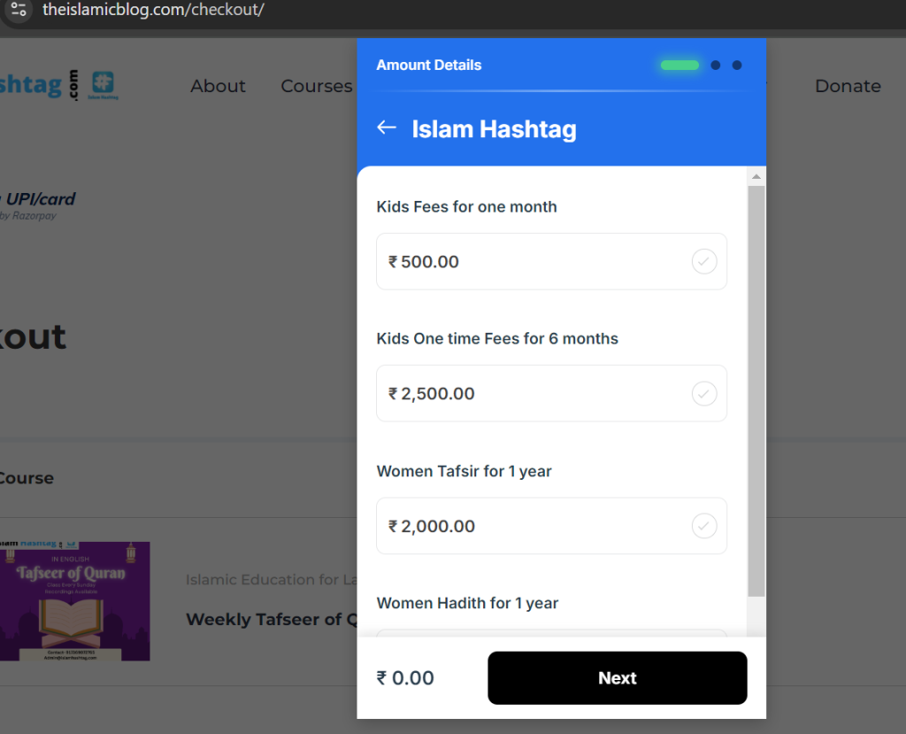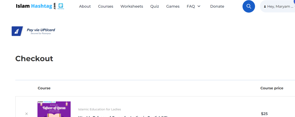 If this Option does not work for you and you want to Pay via UPI or Indian Debit card, Click this link – https://courses.islamhashtag.com/product-category/courses/ and make Payment.